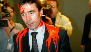 Датский премьер-министр Андерс Фог Расмуссен был облит красной..