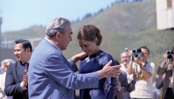 Леонид Брежнев и Ирина Роднина на Ледовом стадионе в Медео. 16..