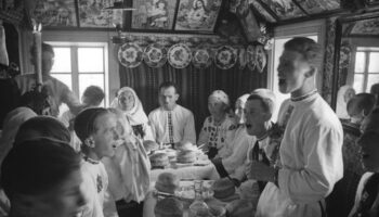 Деревенская свадьба, застолье в хате, Молдавская ССР, 1940 год.