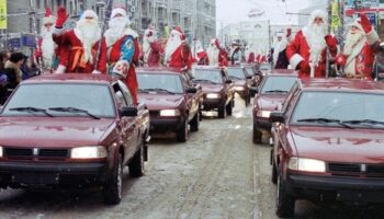 Парад Дед Морозов на Тверской улице. Москва 2000 г . Мы в ТГ..