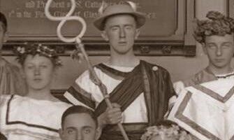 Юный Джон Рональд Руэл Толкин в роли Гермеса в школьной..