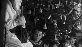 1930-е. Дед Мороз с детьми на новогодней ёлке. Автор Я. Берлин. Мы в..