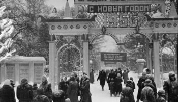 1956. У входа в детский городок парка «Сокольники» в дни школьных..