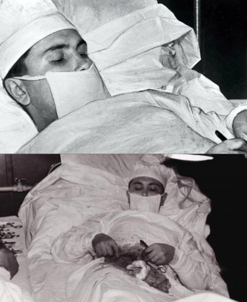 «Я не позволял себе думать ни о чём, кроме дела… Если бы я потерял сознание, Саша Артемьев сделал бы мне инъекцию. Мои бедные ассистенты выглядели испуганными в своих белых халатах. Но когда я сделал себе первую инъекцию, я переключился в режим оперирования. Достать аппендикс было нелегко, особенно на ощупь. В какой-то момент я почувствовал, что теряю силы. Но затем осознал: я уже на финишной прямой!»