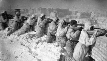 Красноармейцы в камуфляже на краю выживания, Сталинград, 1943..