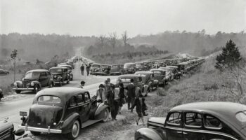 Машины, припаркованные вдоль шоссе в день футбольного матча..