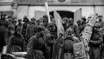Красноармейцы транспортируют конфискованные государством..