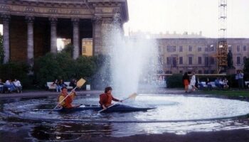 Байдарочники в фонтане у Казанского собора. Санкт-петербург, 1995..