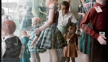 Девочка и ее бабушка засмотрелись на витрину с одеждой в..