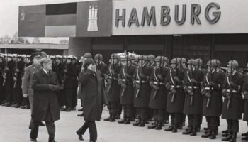 Канцлер ФРГ Гельмут Шмидт провожает генерального секретаря ЦК..
