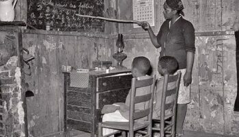 Мать учит своих детей грамоте. Луизиана , 1937..