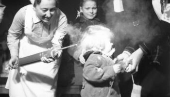 Обработка девочки порошком ДДТ против вшей, Германия(..