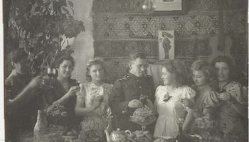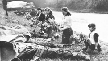 Советские девушки, угнанные на работу в Германию, возлагают..
