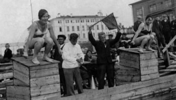 Женские соревнования по плаванию на Северной Двине.Архангельск..