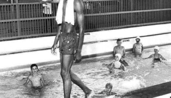 19-летний темнокожий мужчина проходит по борту бассейна для белых..