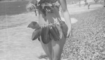 Девушка на медицинском пляже в Гагре, Абхазия, 1961..