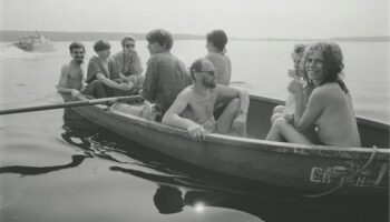 Художники-авангардисты катаются на лодке по Москве-реке,1987 г..