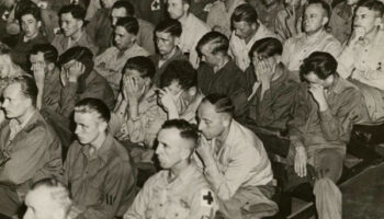 Реакция немецких солдат на видеозаписи из концлагерей в 1945..