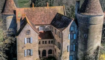 Замок 14 века в Глен в Сервилли, регион Овернь-Рона-Альпы,..