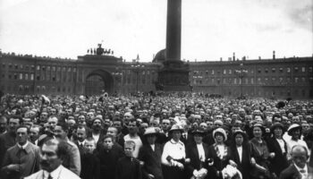 Жители Санкт-Петербурга прослушивают на Дворцовой площади..