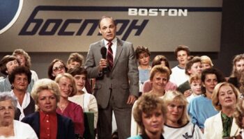 Владимир Познер во время телемоста Ленинград — Бостон «Женщины..