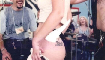 Девушка хвастается татуировкой на байк-шоу . Ростов-на-Дону,1998 г..