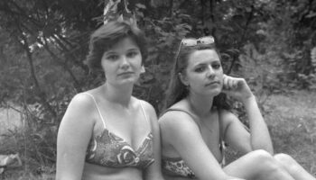 Девушки отдыхают на речном пляже .Воронеж ,1977..