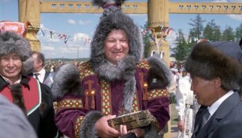 Президент РФ Борис Ельцин на национальном якутском празднике..