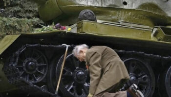 Ветеран рядом с танком Т-34-85, на котором он сражался в годы..