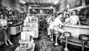 Закусочные, парикмахерские и магазины на знаменитом Шоссе 66, 1950-й..