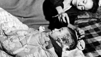 Мать Ухаживает за Ребенком, Пострадавшим от Взрыва Атомной..