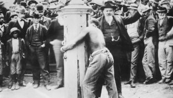 На фотографии шериф, осуществляет порку негра, прикованного к..