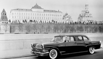 Пробный пробег нового автомобиля ЗИЛ-111 по городу. Москва, 1959..