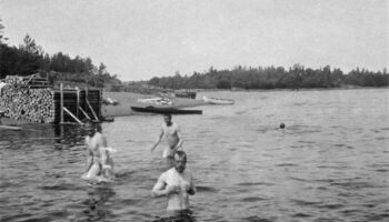 Николай II купается во время отдыха в Финляндии, 1912 год. Больше..
