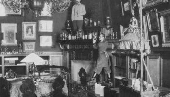 Николай II дегустирует алкогольные напитки , стоя на камине …
