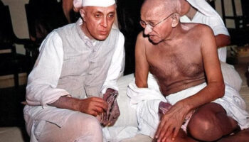 Джавахарлал Неру, первый премьер-министр Индии вместе с Ганди, 1946..