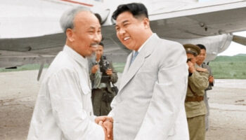 Хо Ши Мин встречает Ким Ир Сена . Ханой , 1957 г .