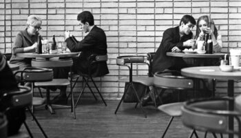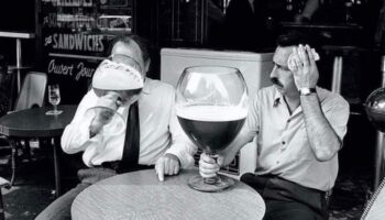 Двое мужчин пьют пиво в кафе . Бельгия , 1971 г . Больше исторических..