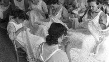 Итальянские кружевницы за работой, Бурано, Венеция, 1950-е. Больше..