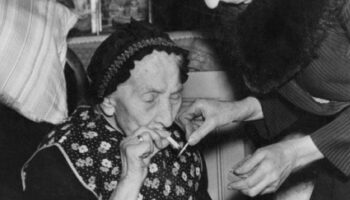 75-летняя Мэри Пэриш прикуривает сигарету для ее 101-летней матери,..