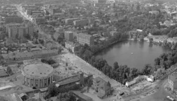 Район метро «Краснопресненская» с высотки на пл. Восстания,..