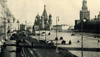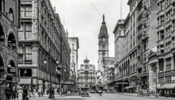 На улицах Филадельфии, 1912 год. Справа в кадре — здание..