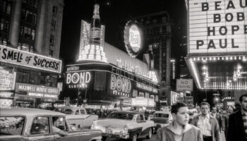 На Бродвее в районе Таймс Сквер — Нью-Йорк, 1957 год.