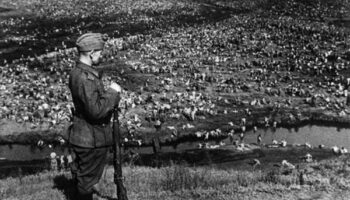 Немецкий часовой охраняет советских военнопленных, Беларусь,..