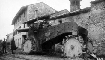 Разрушенная гигантская итальянская гаубица Obice da 305/17 на окраине..