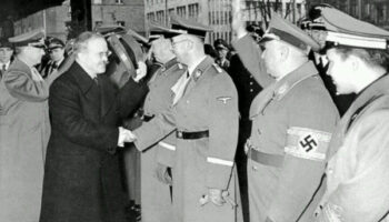 Молотов дружески пожимает руку Гиммлеру, Берлин, ноябрь 1940..