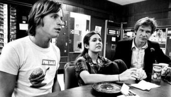 Актёры Звёздных Войн М.Хэмилл, К.Фишер и Х.Форд в баре. Снимают..