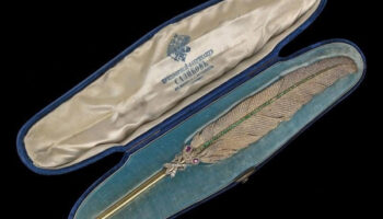 Подарочное перо князю Горчакову. 1867 год. Перо в футляре. Красивая..