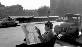 Жан-Поль Бельмондо на съемках фильма “На последнем дыхании“, 1959..