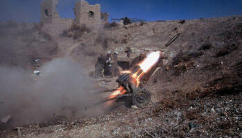 Афганские моджахеды ведут огонь из китайской реактивной..